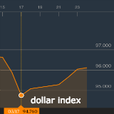 De dollar index -- een gewogen gemiddelde van de greenback tegenover de zes belangrijkste andere valuta op de forex -- steeg donderda tot 96,11, waar vorige week donderdag nog gesloten werd op 94,76, wat de laagste sluiting was sinds medio oktober vorig jaar. Desondanks is de index nog altijd een behoorlijk eind van de 98,35 waar begin maart op werd gesloten, en al helemaal van de stand van boven de 100 die op 30 november bereikt werd.
