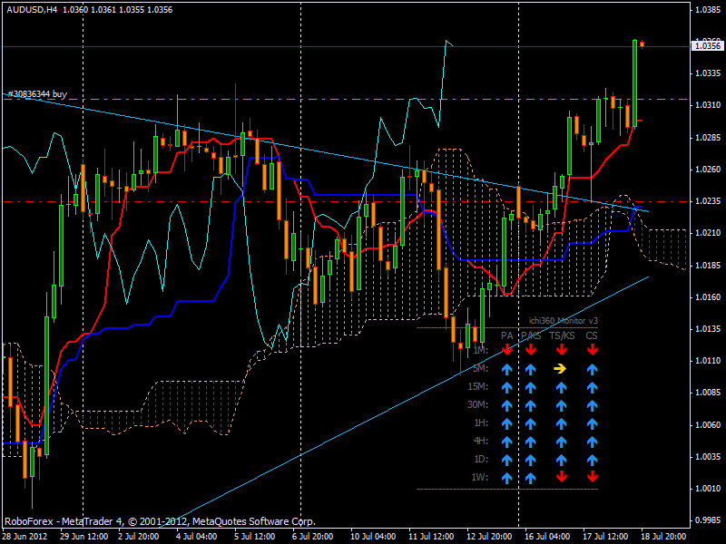 De Ichimoku heeft 34 puntjes gepakt en 80 verloren helaas.